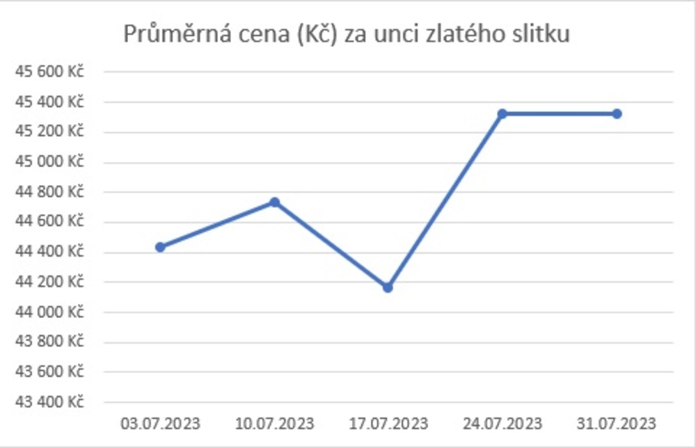Vývoj ceny zlata na tuzemském trhu za červenec 2023